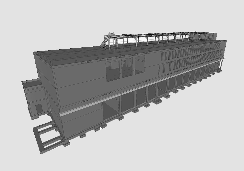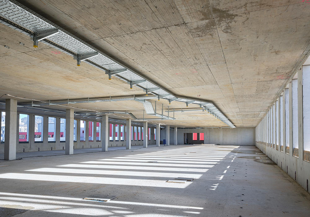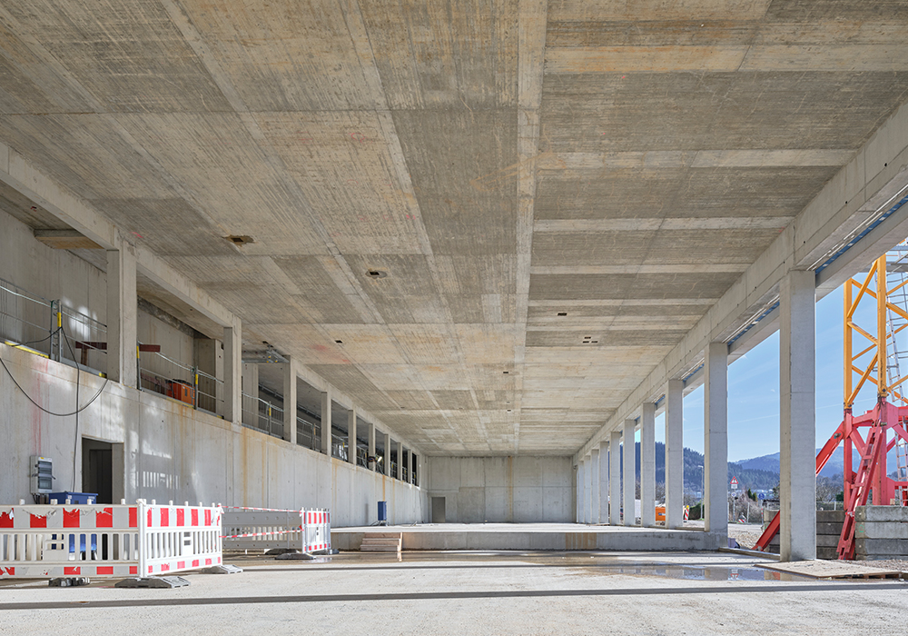 Die Erweiterung des Rettungszentrums auf dem Gelände der Hauptfeuerwache in Freiburg soll die verschiedenen Rettungsdienste an einem Standort bündeln. Daher galt es, im zweiten Bauabschnitt ein Tragwerk zu entwickeln, welches den Ansprüchen der unterschiedlichen Nutzer gerecht wird. Über vorgespannte Geschossdecken konnten die vertikalen Bauteile auf ein Minimum reduziert werden, um die Abfangung von Lasten über der Fahrzeughalle zu vermeiden.